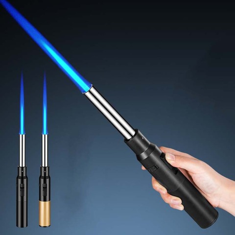 안전 잠금 장치가있는 긴 손잡이 토치 라이터 조정 가능한 제트 불꽃 부탄 리필 방풍 담배 바베큐 캠핑 라이터