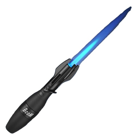 조정 가능한 회전식 제트 불꽃 라이터 강력한 블루 불꽃 토치 로고 포장 금속 긴 펜 부탄 가스 캠핑 담배 사용
