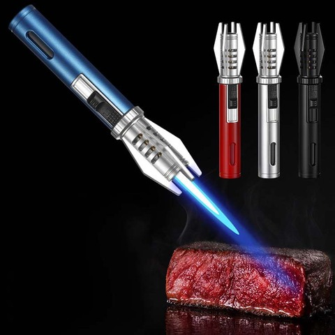 야외 주방 부탄 바베큐 양초 가스 라이터 블루 불꽃 토치 라이터 제트 불꽃 리필 담배 시가 라이터